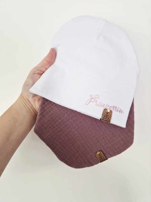 Beanie Set weiß | antique rose "Prinzessin" Kopfumfang 45/47cm